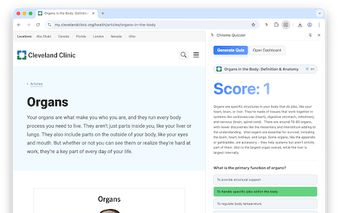 Chrome Quizzer เป็นส่วนเสริมฟรีที่ออกแบบมาสำหรับเบราว์เซอร์ Chrome ซึ่งเปลี่ยนแปลงวิธีที่ผู้ใช้มีปฏิสัมพันธ์กับเนื้อหาออนไลน์ โดยการใช้โมเดลภาษาบนอุปกรณ์ของอุปกรณ์ มันสร้างแบบทดสอบและสรุปจากข้อความที่ผู้ใช้อ่าน ทำให้สามารถตรวจสอบความเข้าใจได้ทันที เครื่องมือนวัตกรรมนี้ช่วยให้ผู้ใช้มีส่วนร่วมกับสื่อการเรียนรู้ได้อย่างมีประสิทธิภาพมากขึ้น ทำให้แน่ใจว่าข้อมูลจะถูกจดจำได้ดีขึ้น